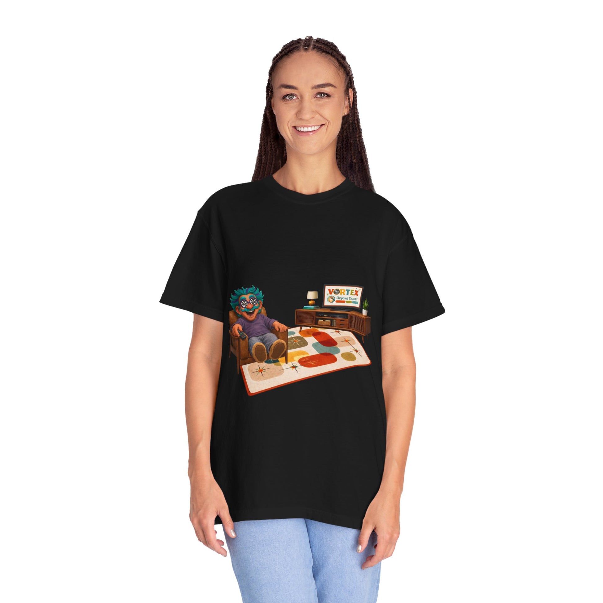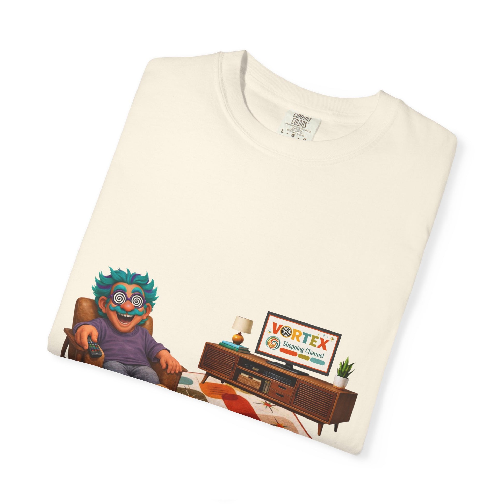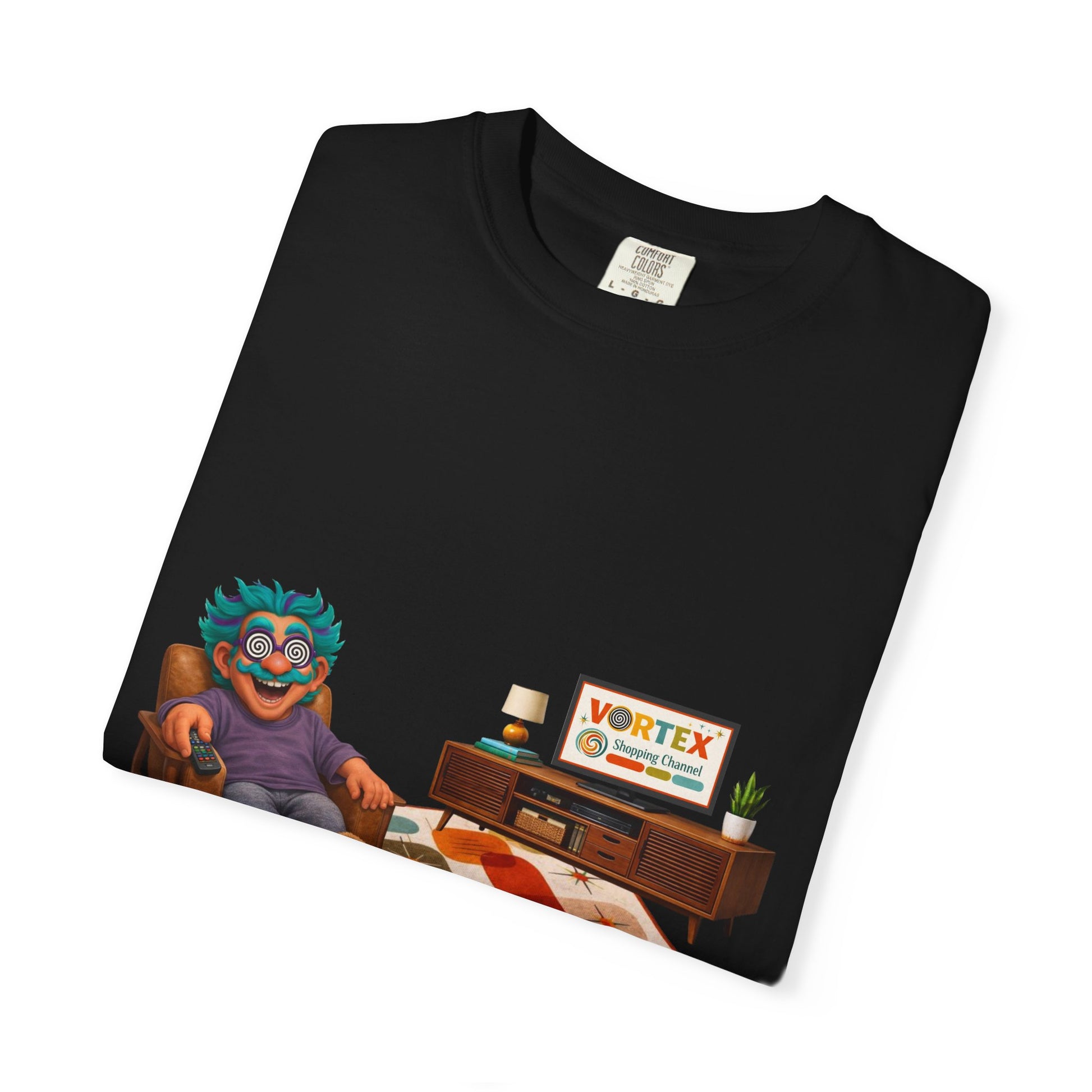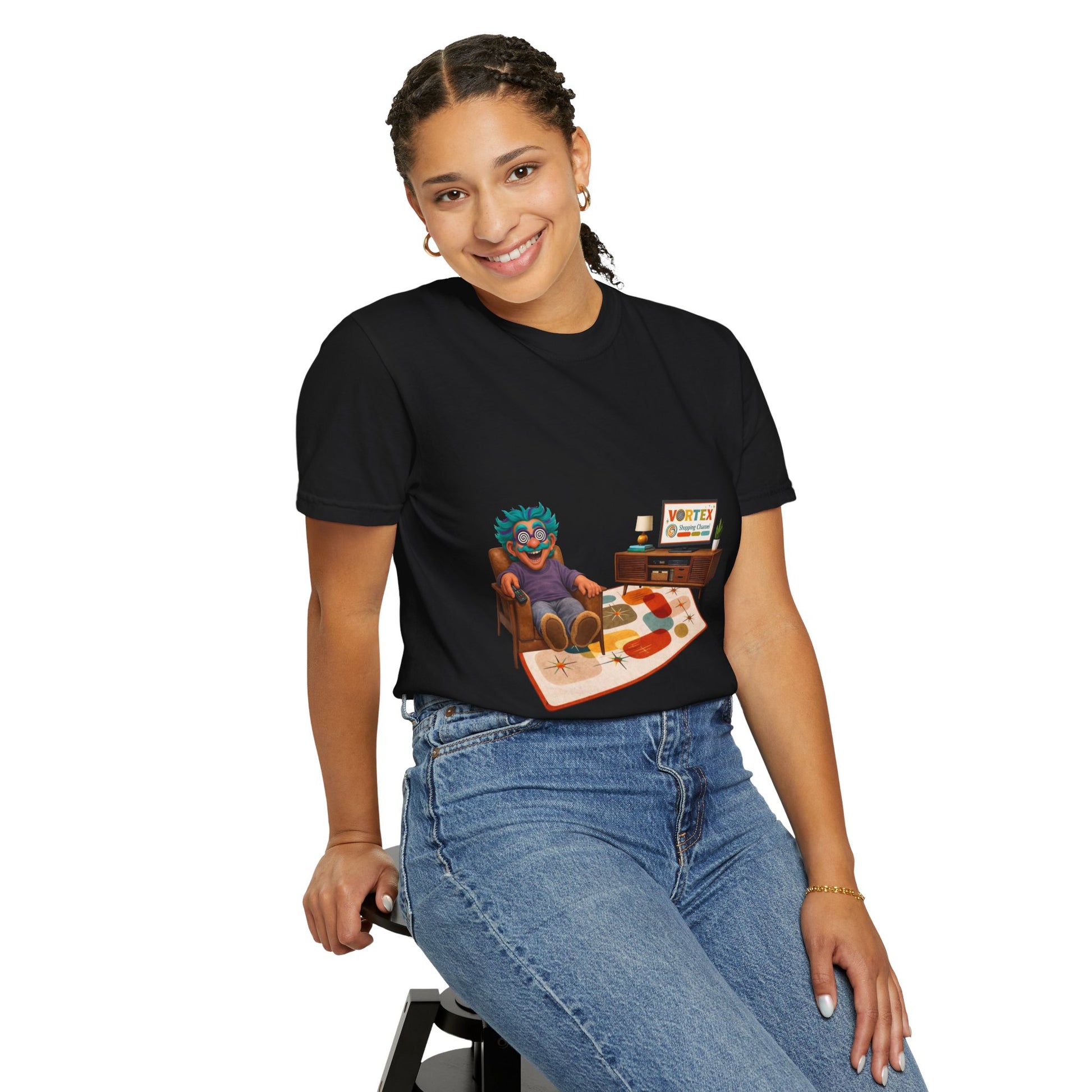 Vintage Living Room Graphic T-Shirt — 'VORTEX' Retro Gamer Chill Tee